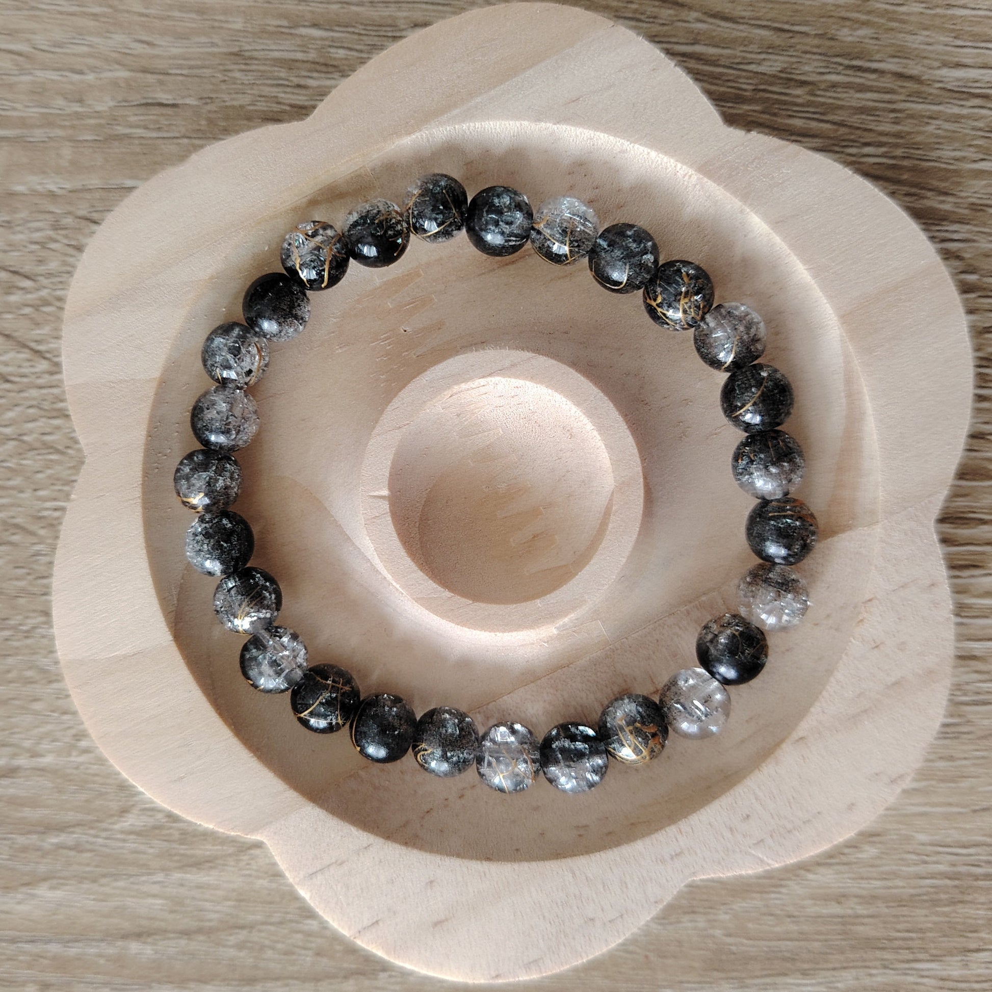 bracelet de perles noir et transparent